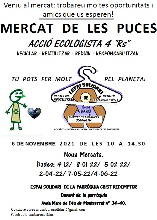 Mes de febrer fem el Mercat de les Puces el primer dissabte de mes dia 5 de febrer (si el temps acompanya). De 10 a 14,30 etem oberts. Entrada lliure. Paradistes 3 € per taula i cadires