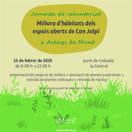 Dissabte 15 de febrer, a l’entorn de Can Jalpí d’Arenys de Munt, ens posarem a treballar per millorar les comunitats vegetals i les poblacions animals.