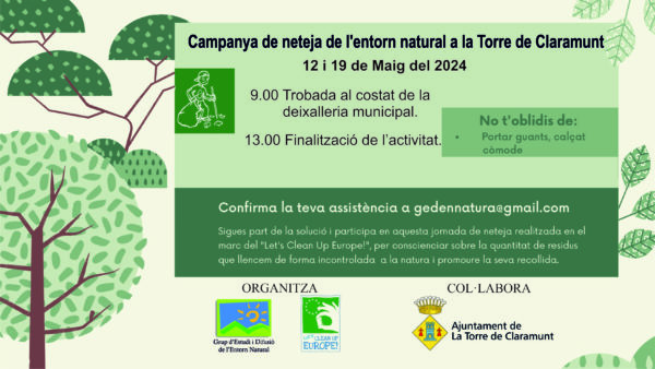 Com cada any en aquestes dates, realitzem una neteja de boscos de la Torre de Claramunt. Aquest any, fem dos dies de neteja, el dia 12 i el 19 de maig.
