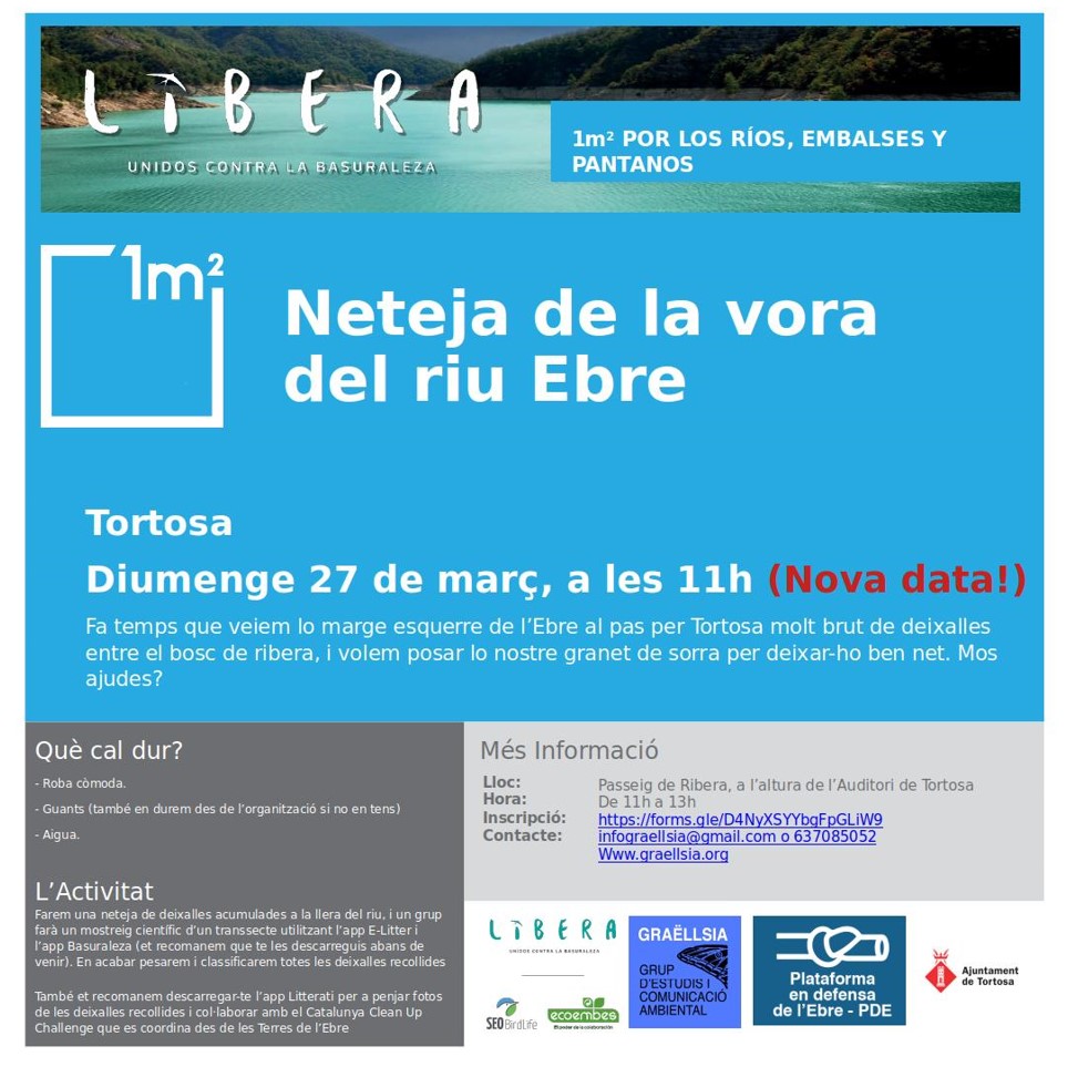 Aquesta activitat forma part de les accions proposades des del Proyecto Libera en el qual hi participem. S’organitza conjuntament amb la Plataforma en Defensa de l’Ebre per a unir energies per a defensar, cuidar i conservar lo nostre riu.