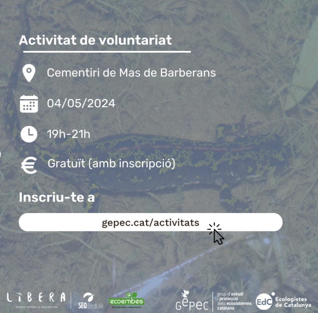 Aquest dissabte, vine a Mas de Barberans a donar un cop de mà al tritó verd retirant basuraleza de l’entorn!