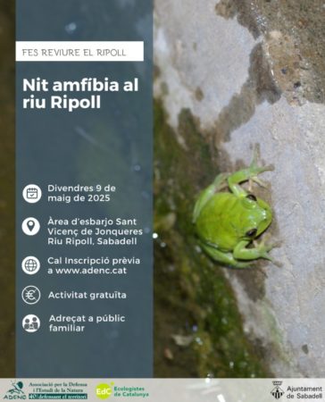 Com cada primavera, el grup de “Fes reviure el Ripoll” organitza la nit amfíbia amb la finalitat de fer un cens dels amfibis que podem trobar al riu i a la vegada donar a conèixer aquest animals a la ciutadania. Vine al riu Ripoll a descobrir els seus amfibis, podràs escoltar i observar les granotes i gripaus que hi viuen!