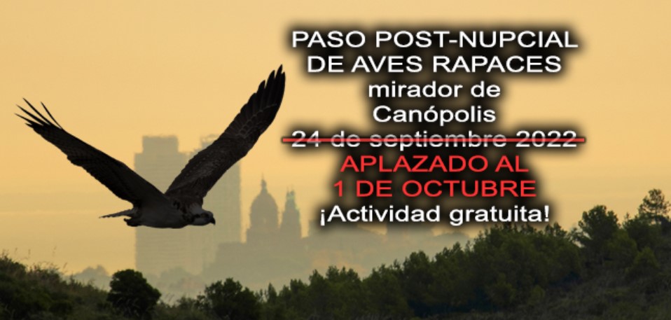 El mirador de Canópolis és un bon enclavament litoral per a l’observació del pas de rapinyaires, es va estrenar el tardor. A més de xoriguers, àguiles, milans, aligots i altres, poden volar altres aus tales com falciots i abellarols. Quedem a les 9,30h al punt senyalat al mapa amb una X (hi haurà algú allí amb la samarreta de SEO).
