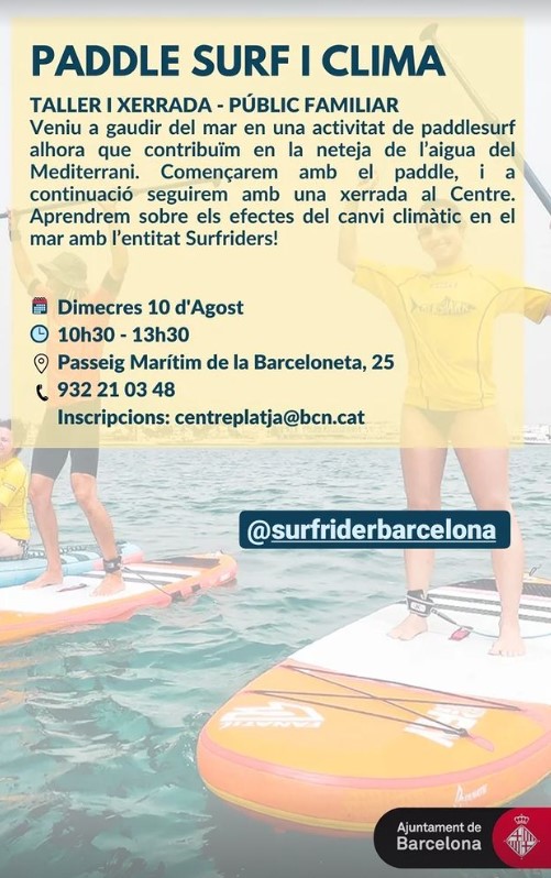 Alhora, contribuirem a netejar l’aigua del Mediterrani i aprendrem sobre els efectes del canvi climàtic en el mar amb l’entitat Surfrider!
