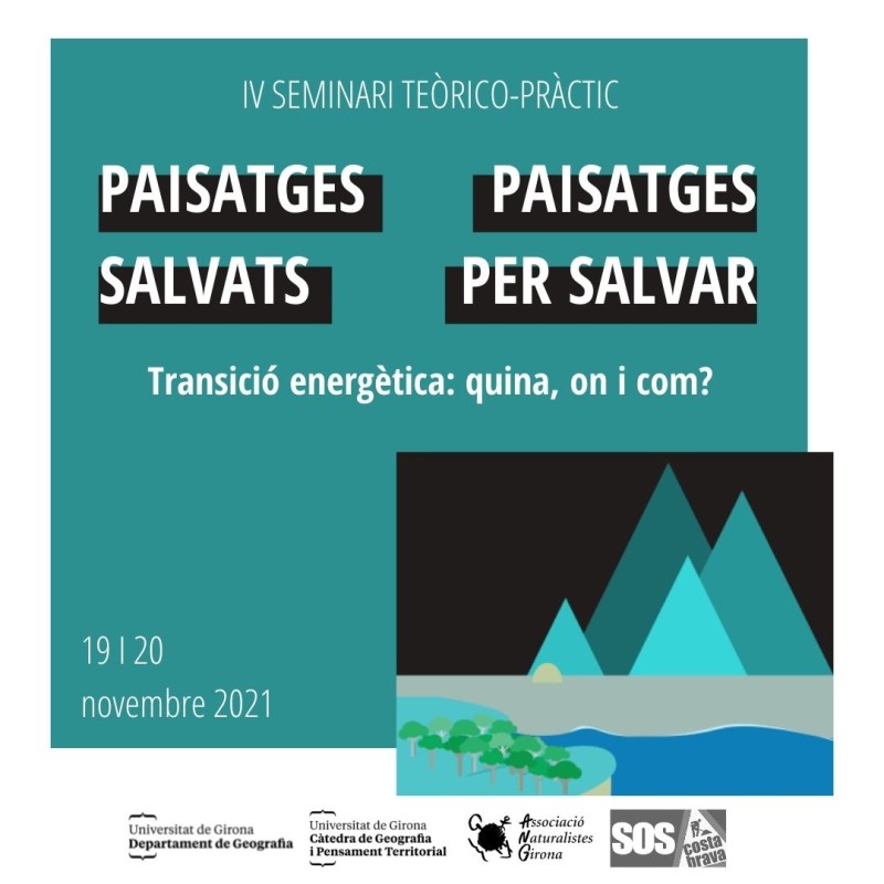 Els propers 19 i 20 de novembre tindrà lloc el IV Seminari teòric-pràctic: Paisatges salvats-paisatges per salvar. Transició energètica: quina, on i com?, organitzat per la Càtedra de Geografia i Pensament Territorial de la UdG, Departament de Geografia de la UdG, Associació Naturalistes de Girona i Plataforma SOS Costa Brava.