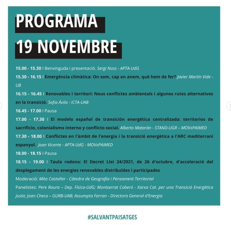 - 17.30-18.00 | Conflictes en l’àmbit de l’energia i la transició energètica a l’ARC mediterrani espanyol. Joan Vicente – APTA-UdG – MOVxPAIMED
