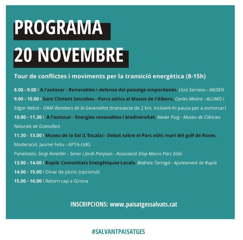- 8.00-9.00 | A l’autocar – Renovables i defensa del paisatge empordanès. Lluís Serrano – IAEDEN.