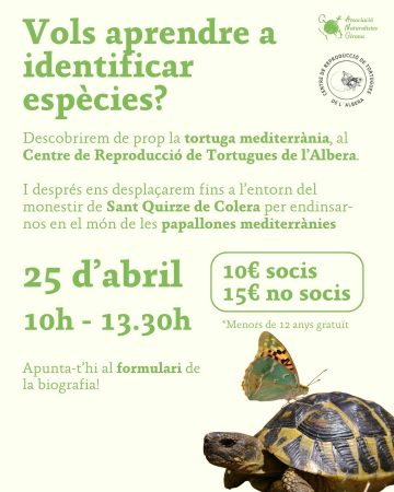 Després, ens desplaçarem fins a l’entorn del monestir de Sant Quirze de Colera per endinsar-nos en el món de les papallones mediterrànies. Aprendrem a identificar-les i buscarem autèntiques joies alades com la pandora, l’escac ferruginós o la blanqueta de la mitja lluna.