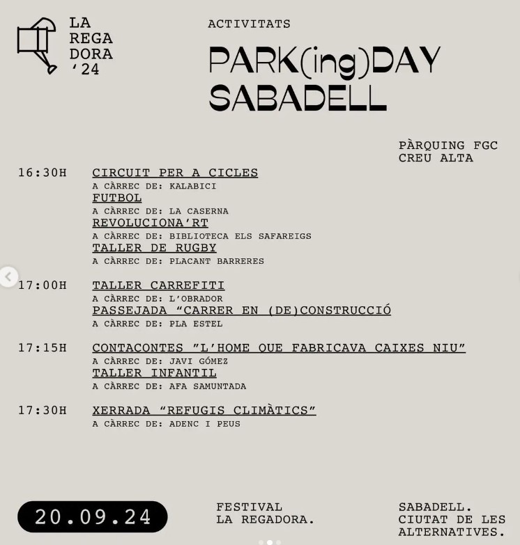 El proper divendres 20 de setembre de 16:30h a 20h, omplim el pàrquing d’FGC de la Creu Alta d’activitats per celebrar una vegada més aquesta jornada reivindicativa.