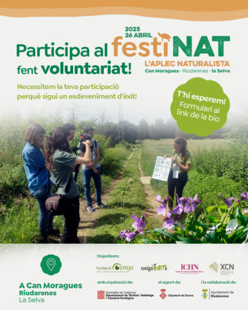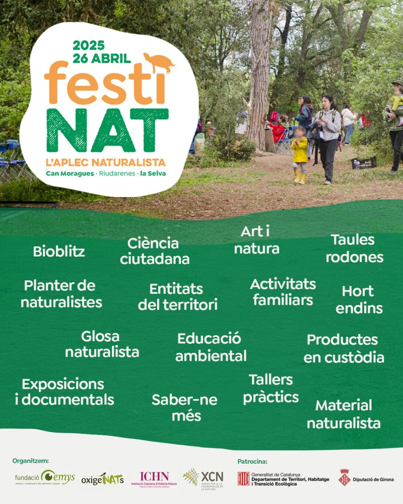 El pròxim 26 d’abril tindrà lloc la 3a edició del FestiNAT a Can Moragues, Riudarenes (la Selva), seu de la Fundació Emys, coorganitzadora de l’esdeveniment junt amb la ICHN, la XCN i OxigeNATs.