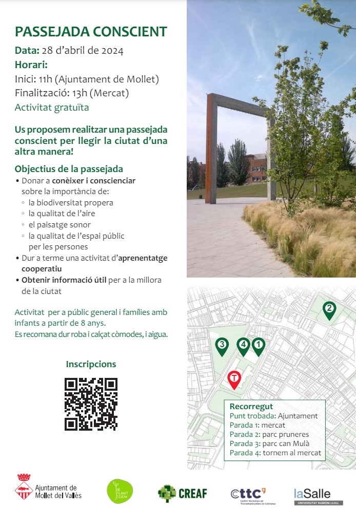 Passejada amb motiu de la Setmana Donar a conèixer i conscienciar sobre la importància: de la biodiversitat propera, la qualitat de l'aire, el paisatge sonor i la qualitat de l'espai públic per les persones