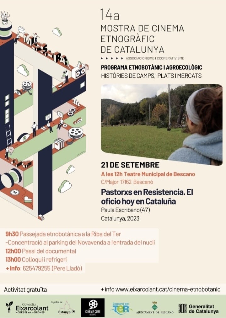 En el marc del Programa de Cinema Etnobotànic i Agroecològic (14a Mostra de Cinema Etnogràfic de Catalunya), visualitzarem la pel·lícula Pastorxs en Resistencia. El oficio hoy en Cataluña, Paula Escribano (47?) Catalunya, 2023.
