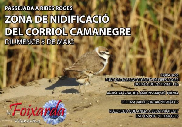 Diumenge 5 de maig, La Foixarda farem una passejada per la Platja de Ribes Roges, per visitar la zona de nidificació del Corriol camanegre.