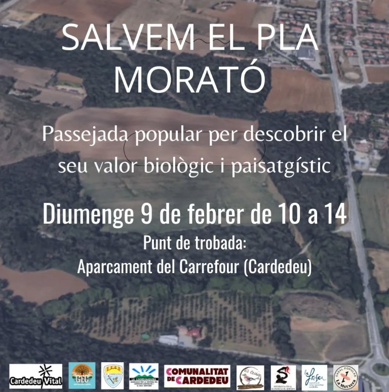Aquesta passejada per la zona agrícola i boscosa del Pla Morató vol informar la necessitat de mantenir-la i les nefastes conseqüències que haurem d'enfrontar si continua aquest desgavell urbanístic sobre.