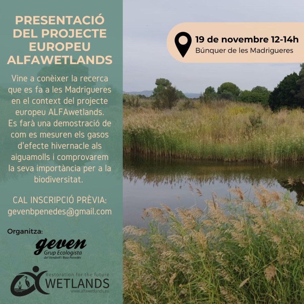 Aquest dissabte 19 de novembre presentarem el Projecte europeu ALFAwetlands, en el qual està inclòs l’espai gràcies a la col·laboració del professorat de la Facultat de Biologia de la UB.