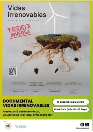 Quina il•lusió ens fa anunciar-vos que aquest mes de desembre tindrem l’oportunitat de veure la pel•lícula documental "Vidas Irrenovales" i comptar amb la presència del seu director, Francisco J. Vaquero Robustillo, a Berga el 17 de desembre de 2024, a les 17.30 h a la sala blava del Casal Cívic.