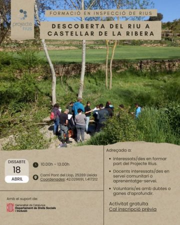 Activitat de formació sobre la metodologia d’inspecció fluvial del Projecte Rius. Mesurarem aspectes com el cabal, la temperatura, la presència de nitrats, els impactes que pateix el bosc de ribera i la fauna que viu en el riu.