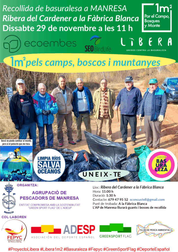 L’Agrupació de pescadors de Manresa lliurarà guants i bosses de recollida