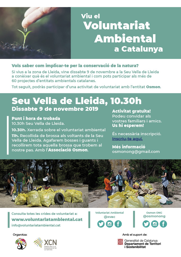 2a jornada territorial a Lleida per conèixer com podem implicar-nos pel medi ambient i participar d’una activitat de voluntariat amb l’entitat Osmon.