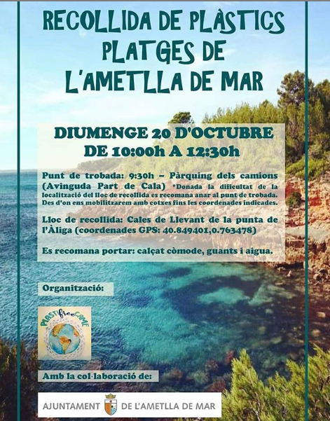 Ens fa especial il·lusió anunciar la segona recollida de plàstics que organitza @plastifreecame .Aquesta vegada es realitzarà a les platges i voltants de la punta de l’Àliga a l’Ametlla de Mar.