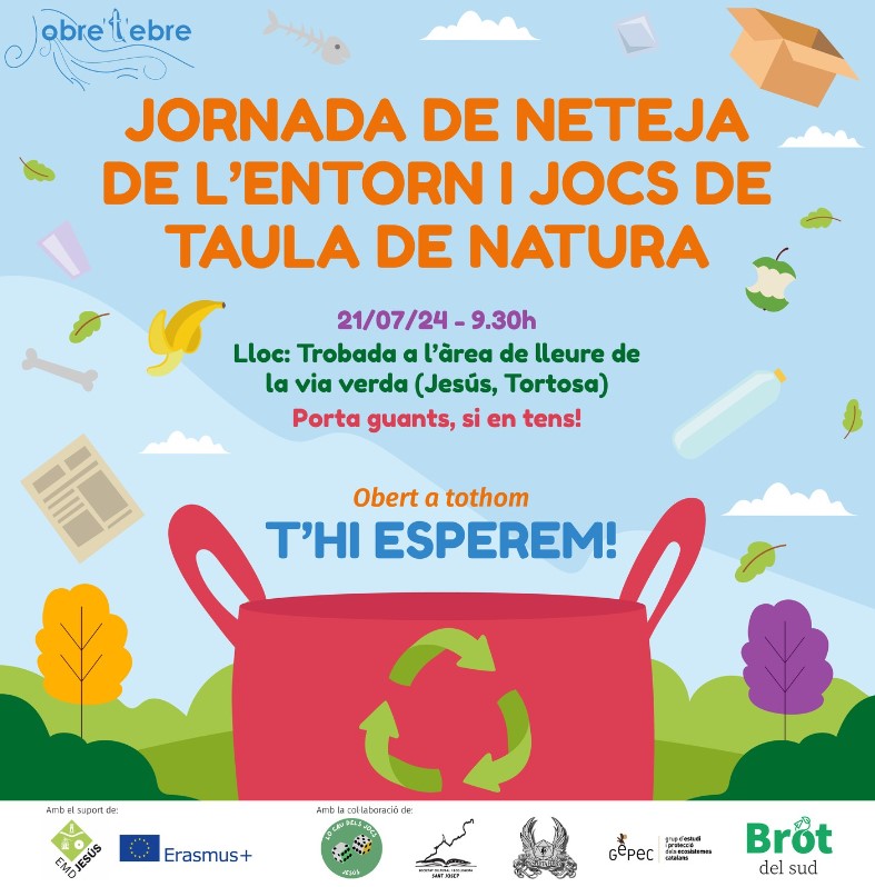 Aquest diumenge 21 de juliol, participarem en la jornada de neteja de l’entorn a Jesús (Tortosa), a la zona de la Via Verda.