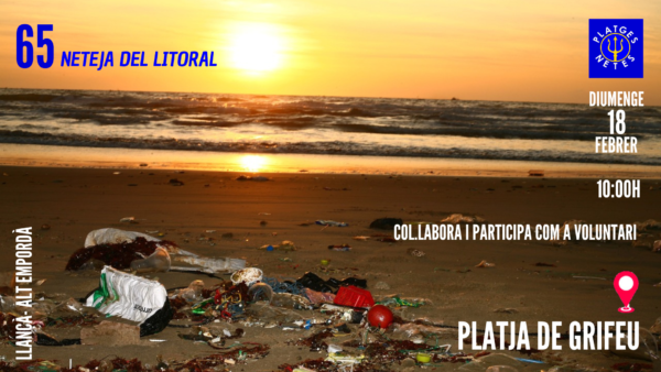 El diumenge 18 de febrer estarem netejant la platja de Grifeu-Llançà de residus plàstics.