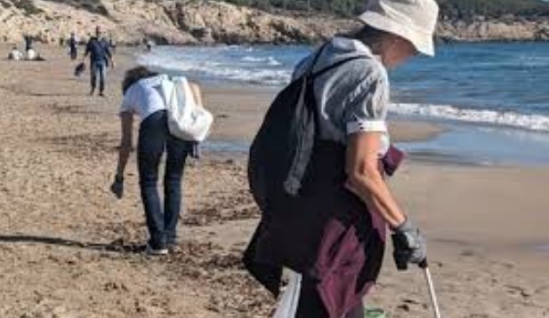 Recollida de residus a la platja de les Anquines a Sitges
