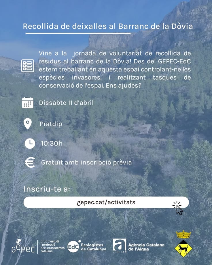 Vols ajudar a cuidar el nostre entorn? Uneix-te a la jornada de voluntariat de recollida de residus al barranc de la Dòvia!