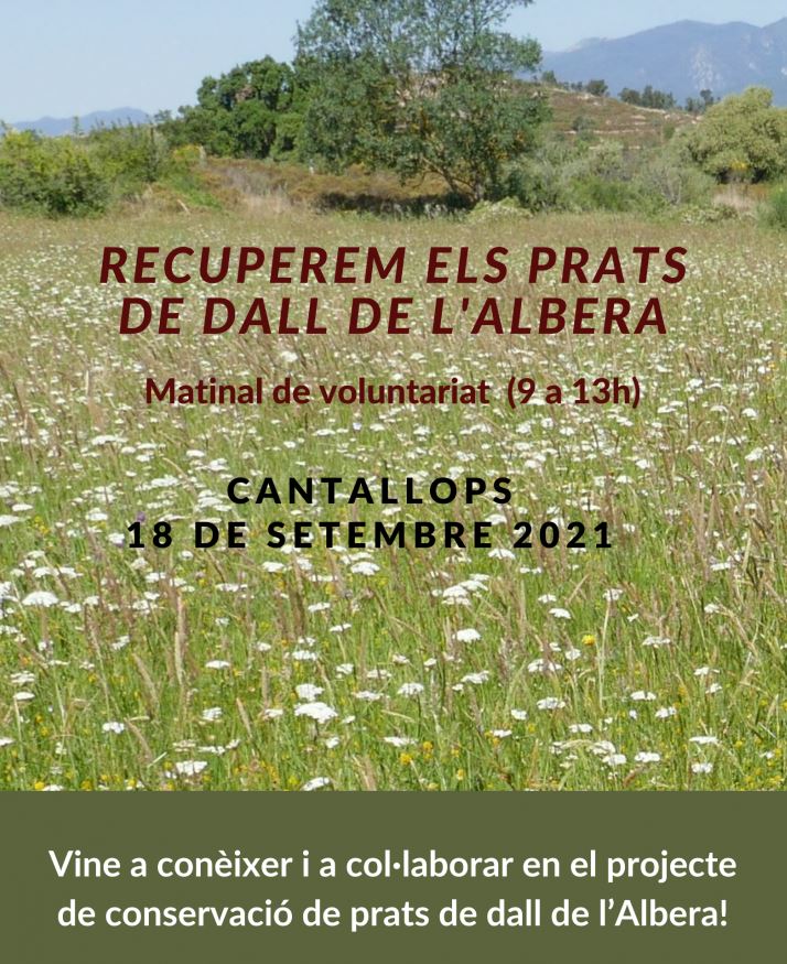 Mentre els prats de dall del piemont de l’Albera reposen després de la sega del mes de juny, el grup de Custòdia Agrària seguim amb la protecció d’aquests singulars hàbitats tan rics en biodiversitat. Estem organitzant una matinal de voluntariat per al dia 18 de setembre que servirà per acabar la tasca de recuperació del Prat Llarg, al municipi de Cantallops. Els camps de dall necessiten ser objecte d’un determinat maneig agrari per a la seva conservació. En aquest cas, no n’hi havia prou amb això, perquè a causa de l’abandonament agrari del paratge, els freixes de les zones veïnes havien anat ocupant el seu espai. Els anys 2019 i 2020 s’hi van fer tasques de tala i dalls successius per recuperar-ne les característiques. Aquest 2021 s’ha tornat a dallar i es pretén millorar la seva composició florística mitjançant una ressembra aquest mes de setembre, coincidint amb aquesta jornada de descoberta i treball. Per poder ressembrar, hem obtingut prèviament grana d’altres prats. Esperem que això permeti reintroduir espècies característiques que havien desaparegut del lloc.