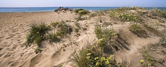 Les dunes de la platja són la residencia de plantes com el melgó marí, el lliri de platja o la campaneta de mar; i d’animals com el corriol camanegres, que fan els seus niu a la sorra de les dunes, o els escarabats piloters.