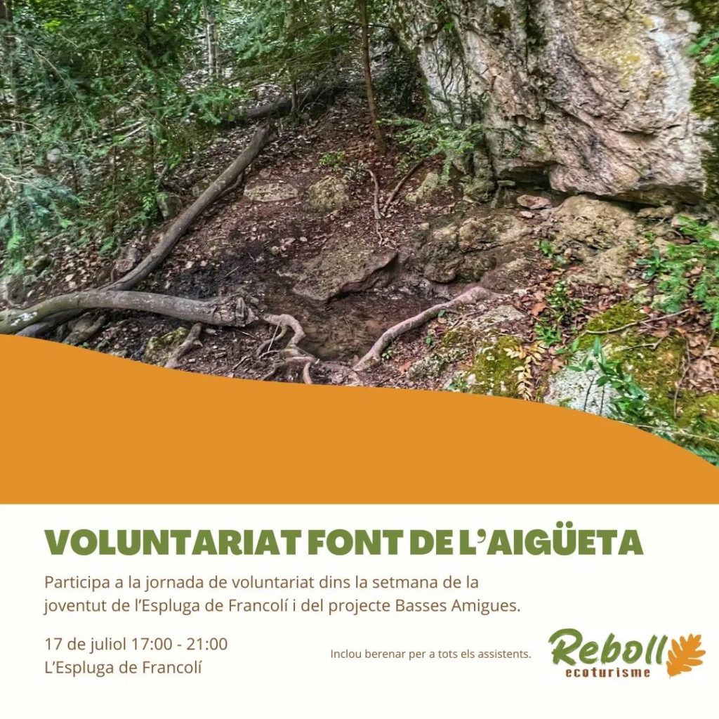 El dimeces 17 de juliol de 17 a 21 h organitzem una jornada de voluntariat dins la setmana de la joventut de l’Espluga de Francolí on actuarem a la Font de l’Aigüeta al Bosc del Comú.