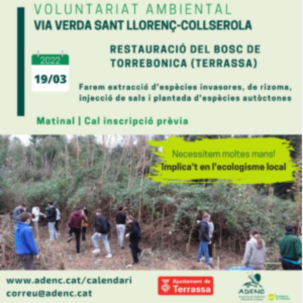 Restauració del bosc de Torrebonica a Terrassa, part de la Via Verda Sant Llorenç Collserola.