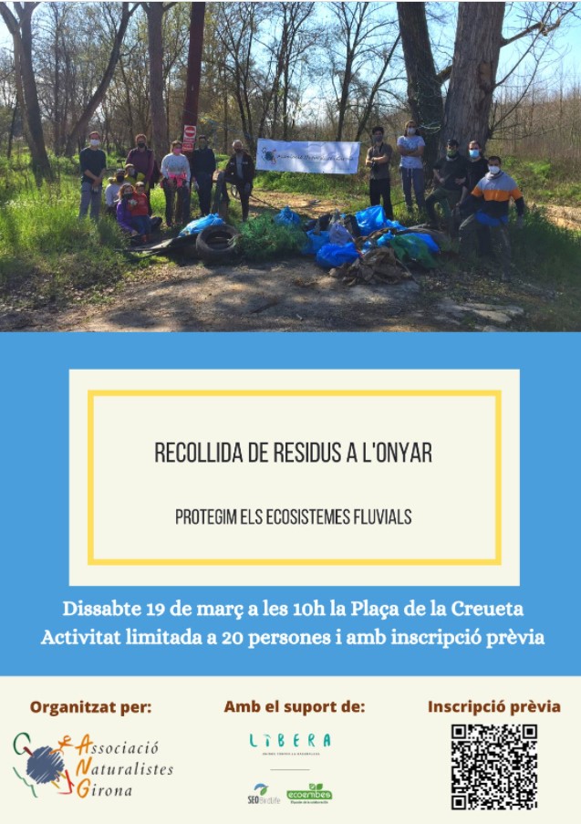 Dins la campanya 1m2porlanaturaleza de la FundacióLIBERA, l’ANG organitzem una recollida a la llera de l’Onyar al seu pas pel núcli de La Creueta, a Quart.