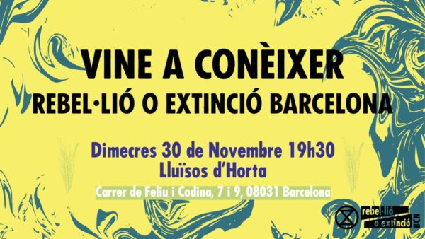 Aquest dimecres vinent, dia 30/11, reunió de benvinguda a Rebel•l’ió o Extinció Barcelona