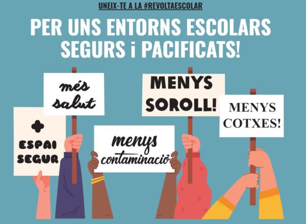 Diferents AFAs i AMPAs de tot Catalunya, amb la col.laboració d’entitats veïnals i ecologistes, estem promovent talls de carrer davant de les escoles cada primer divendres de mes a l’hora de sortida de l’escola (normalment de 16:30 a 17:00) per tal de reclamar una major pacificació als entorns escolars, menys contaminació i menys soroll.