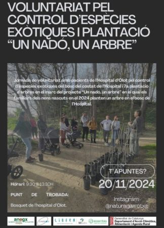 Voluntariat pel control d’espècies exòtiques i plantació “Un nadó, un arbre”. El dia 20 de novembre!