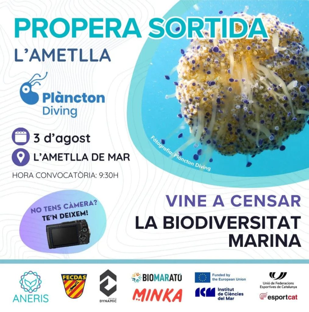 Organitzem una sortida per censar la biodiversitat marina dins del projecte europeu Aneris, el 3 d'agost a les 9:30h amb Plàncton Diving a L'Ametlla de Mar.
