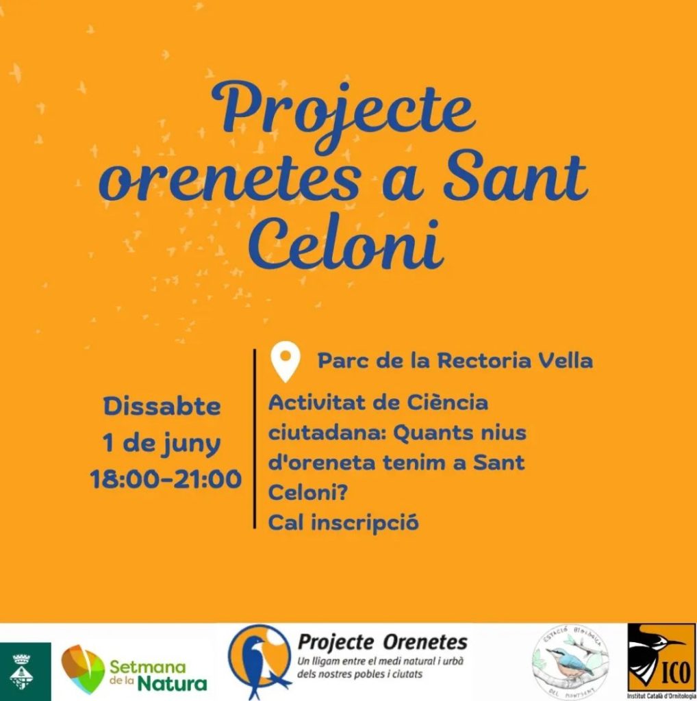 L’1 de juny presentarem el projecte Orenetes de l’associació Institut Català d’Ornitologia a Sant Celoni (@ajuntamentsantceloni ) en el marc de la Setmana de la Natura.