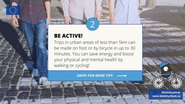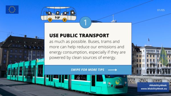 EUROPEAN MOBILITY WEEK és la campanya insígnia de conscienciació de la Comissió Europea sobre mobilitat urbana sostenible. Promou un canvi de comportament a favor de la mobilitat activa, el transport públic i altres solucions de transport netes i intel·ligents.