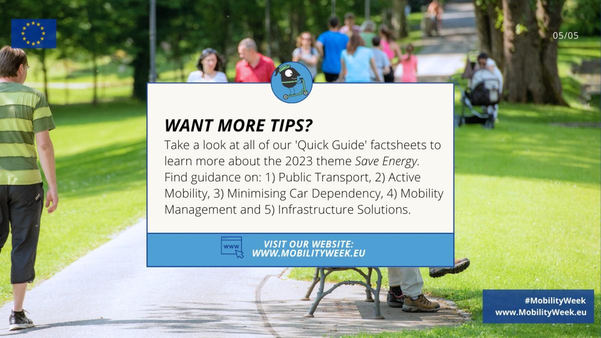 Enguany el tema de la SETMANA EUROPEA DE LA MOBILITAT 2023 és Estalviar energia. Per què és important estalviar energia mitjançant la mobilitat urbana sostenible? Perquè la pobresa energètica i de mobilitat està augmentant a causa dels costos més elevats per als residents i les empreses d’arreu d’Europa. Mentrestant, operar el transport públic continua sent una despesa elevada per als pressupostos de la ciutat: reduir aquesta despesa mitjançant un transport eficient energèticament donarà suport a infraestructures de transport assequibles i sostenibles.
