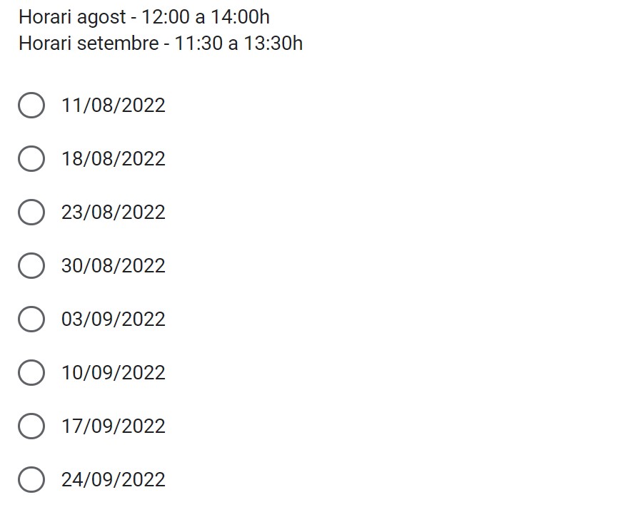 Per reservar la teva plaça, només hauràs d’emplenar el següent formulari i seleccionar la data que més t’encaixi!