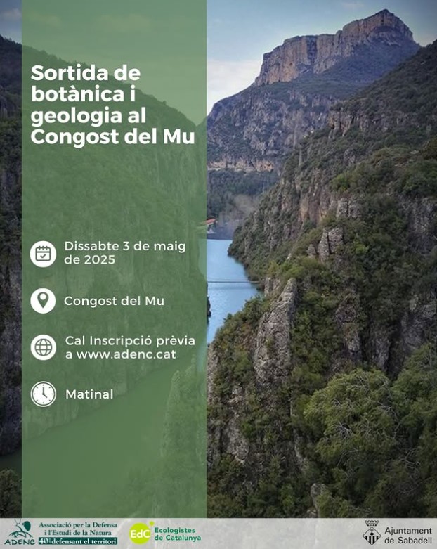 Inscripcions i més informació a: https://adenc.cat/calendari/sortida-de-botanica-i-geologia-al-congost-del-mu/
