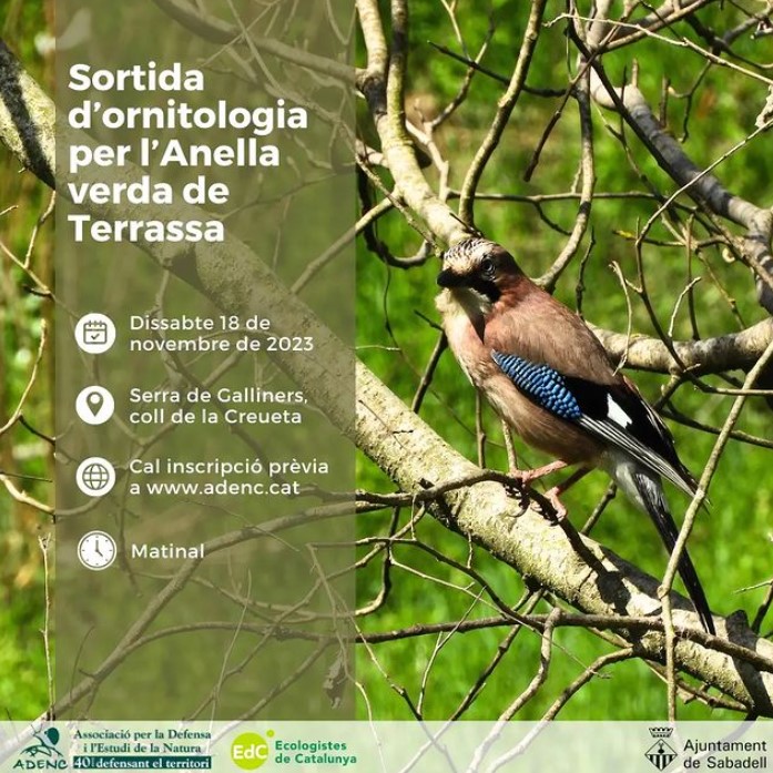 Vine dissabte 18 a la sortida d’ornitologia per l’Anella Verda de Terrassa.
