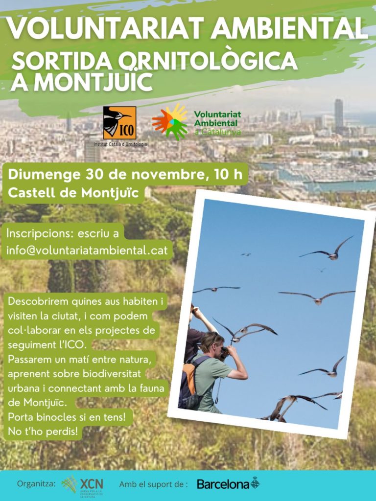 Ens trobem diumenge 30 de novembre a les 10 h al Castell de Montjuïc, per descobrir quines aus habiten i visiten la ciutat, i com podem col·laborar en els projectes de seguiment l’ICO.