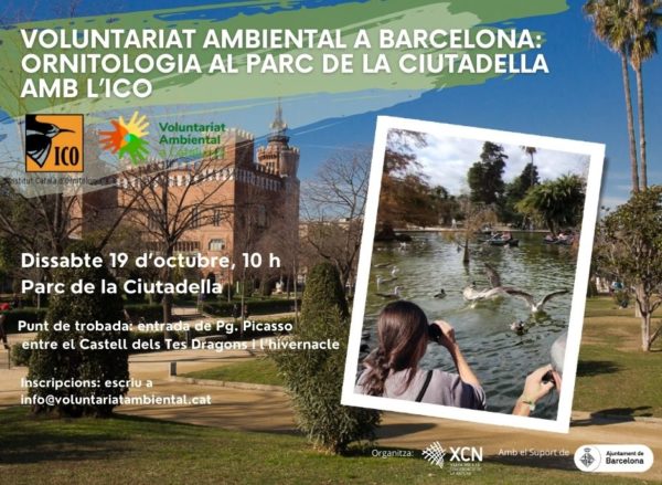 Ens trobem dissabte 19 d’octubre a les 10 h al Parc  de la Ciutadella, per descobrir quines aus habiten i visiten la ciutat, i com podem col·laborar en els projectes de seguiment l’ICO.