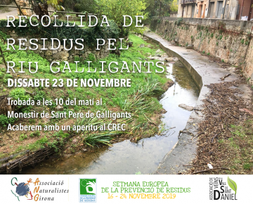 Trobada per netejar el riu Galligants de tots els residus que trobem. La sortida la complementarem amb l’observació de la fauna que habita pel riu i la Vall de Sant Daniel.