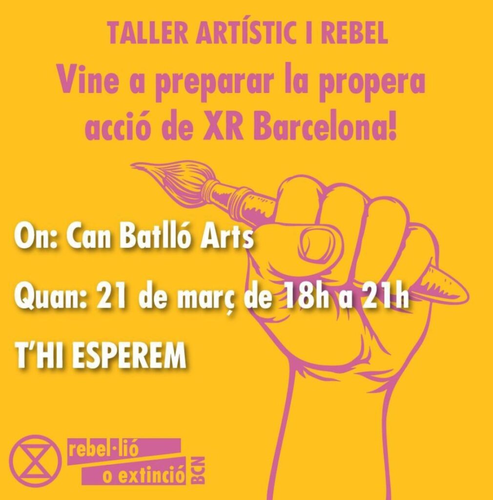 Vine a Can Batlló el dijous 21 de març a les 18 h a preparar les pròximes accions de Rebel·lio o Extinció amb artivisme!