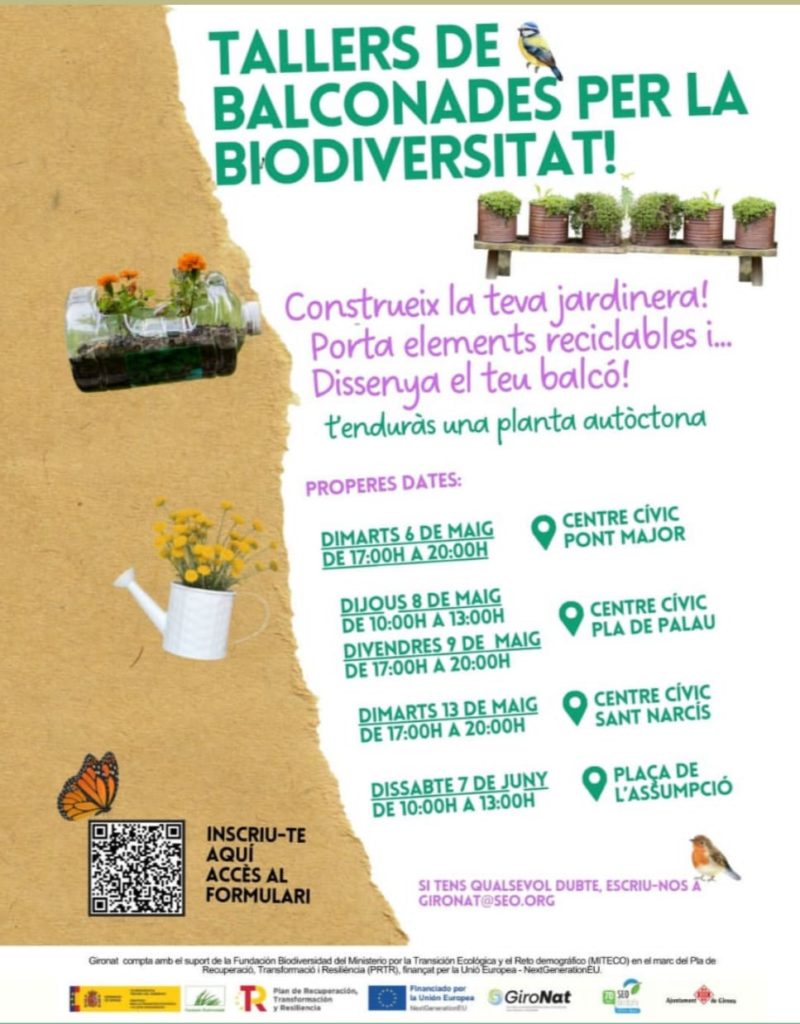 Ets de Girona, tens un balcó, terrassa o jardí i t'agradaria participar en un projecte per afavorir la biodiversitat de la teva ciutat? Aquest taller t'interessa!