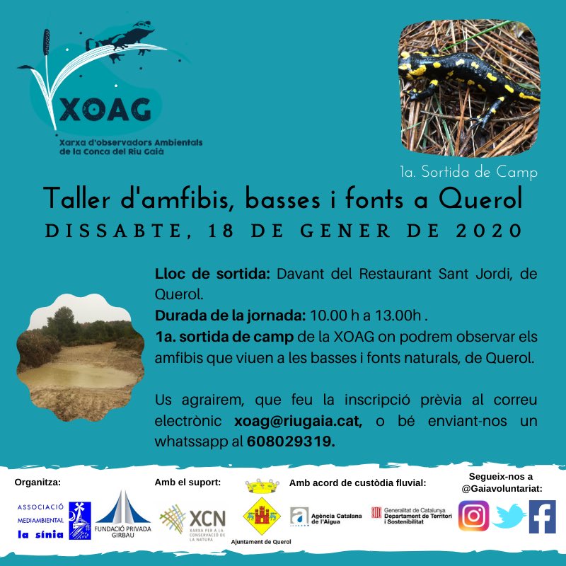 La Xarxa d’Observadors Ambientals del riu Gaià organitza, el proper dissabte 18 de gener, la primera sortida d’identificació dels amfibis que viuen a les basses i les fonts naturals de Querol.
