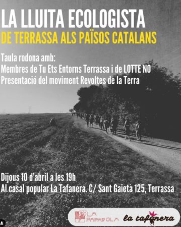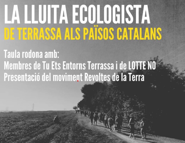 Taula rodona LA LLUITA ECOLOGISTA amb membres de Tu Ets entorn Terrassa @tuetsentornstsa i LOTTE NO + Presentació del moviment REVOLTES DE LA TERRA @revoltesdelaterra